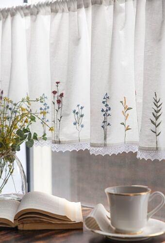 ~ ナチュラルなフラワー刺繍のキッチンバランスカーテン ~